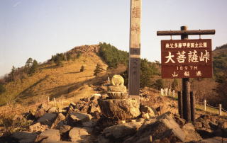 ★大菩薩嶺 2001年5月20日快晴。4:50上日川峠駐車場。5:21福ちゃん荘。6:10大菩薩峠。稜線に出ると強風が吹き出す。明るい歩き易い道。6:30親知らずの頭。唐松尾根への分岐を過ぎてからはコメツガの樹林帯になる。7:08大菩薩嶺。展望無し。7:30山頂発。8:28福ちゃん荘。8:50駐車場。
