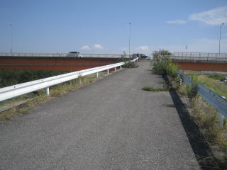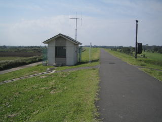 2015/10/4 晴れ。10:09筑波エクスプレス「柏田中駅」。開発中の駅西口で下り、利根川へ向う。10:25「小青田」の「姫宮神社」。付近に分譲地の幟あり。10:50筑波エクスプレス橋下。右岸を下流へ進む。11:21ハングライダー場がある。11:37「張間内排水樋管」。左手前方に「新大利根橋」、その向こう左岸に取手市街地のビルが見える。12:07「しんおおどねばし」。昼食。橋に上る階段あり。この階段は橋の中程にあり、右手に本堤が見える。12:43橋北詰。左岸を下流へ歩く。12:53「稲戸井排水門」。1:05土手に沿って左手にゴルフ場が見え出し、その外側にも土手あり。1:34「稲戸井下流排水樋門」。この頃より風が吹き出す1:41左側の本堤との合流地点。1:55崖の下の小道が始まる。2:12「大利根橋」橋下。「常磐線取手駅」に至る。